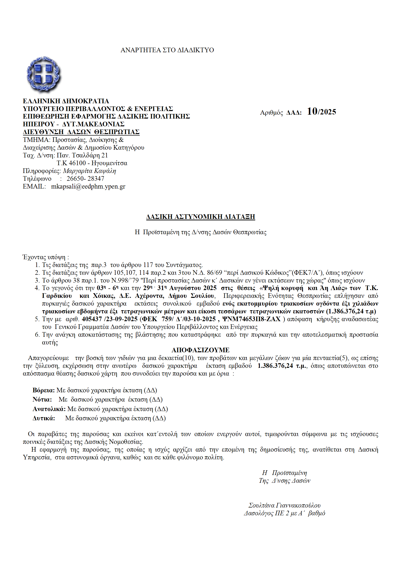 ΔΗΜΟΣ ΣΟΥΛΙΟΥ/ΔΗΜΟΤΗΣ/Ανακοινώσεις/Ανακοινώσεις, Νέα/Δασική αστυνομική διάταξη της Διεύθυνσης Δασών Θεσπρωτίας