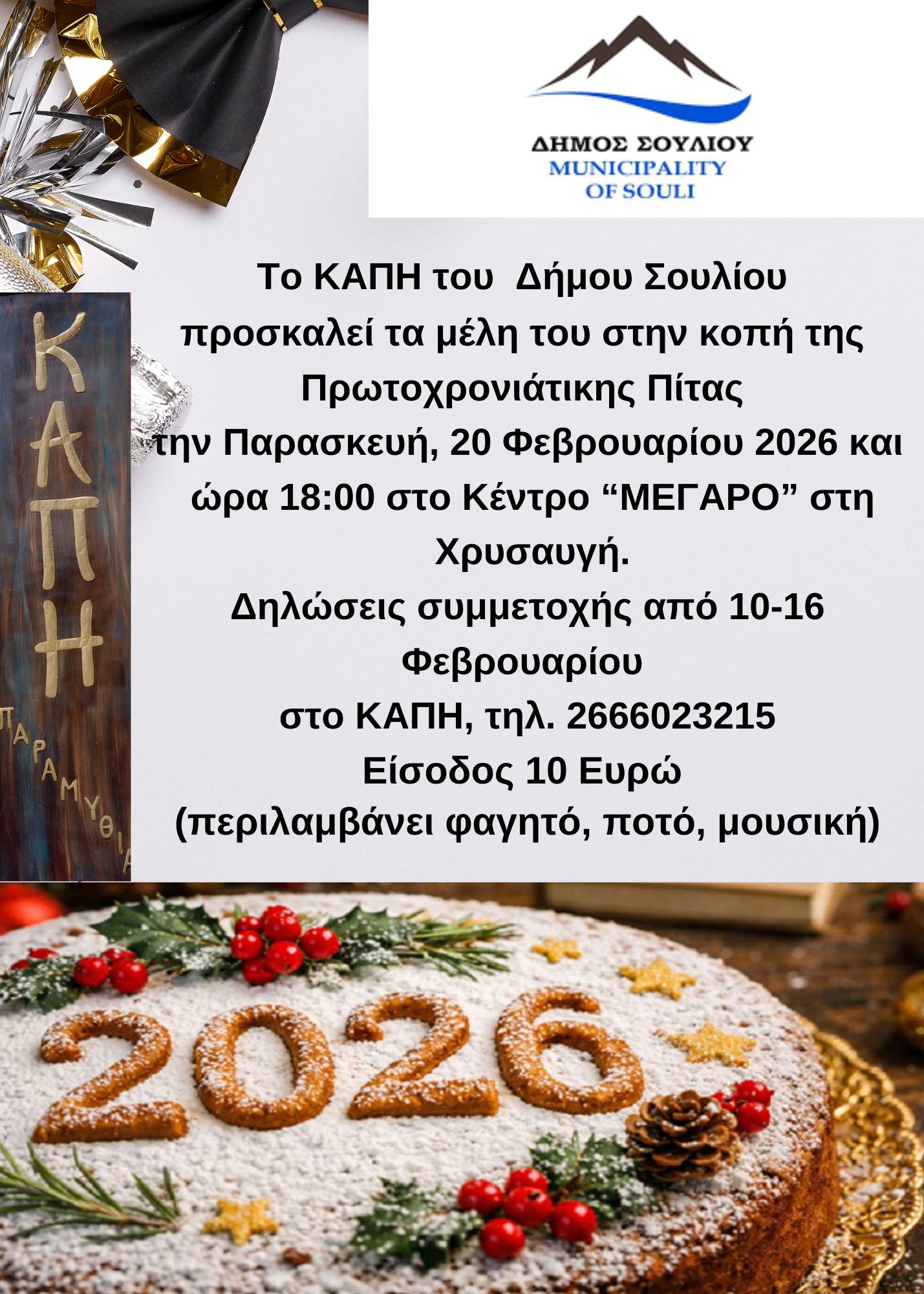 20/2/2026: Κοπή πίτας ΚΑΠΗ Δήμου Σουλίου