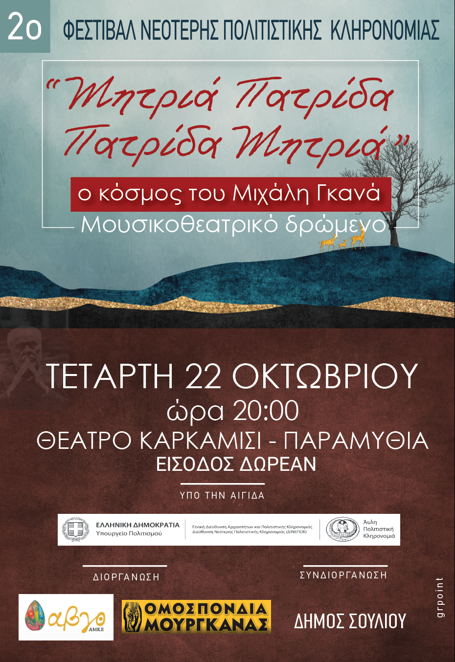 22/10/2025 - 22/10/2025 20:00 Αίθουσα Πολλαπλών Χρήσεων "Καρκαμίσι"