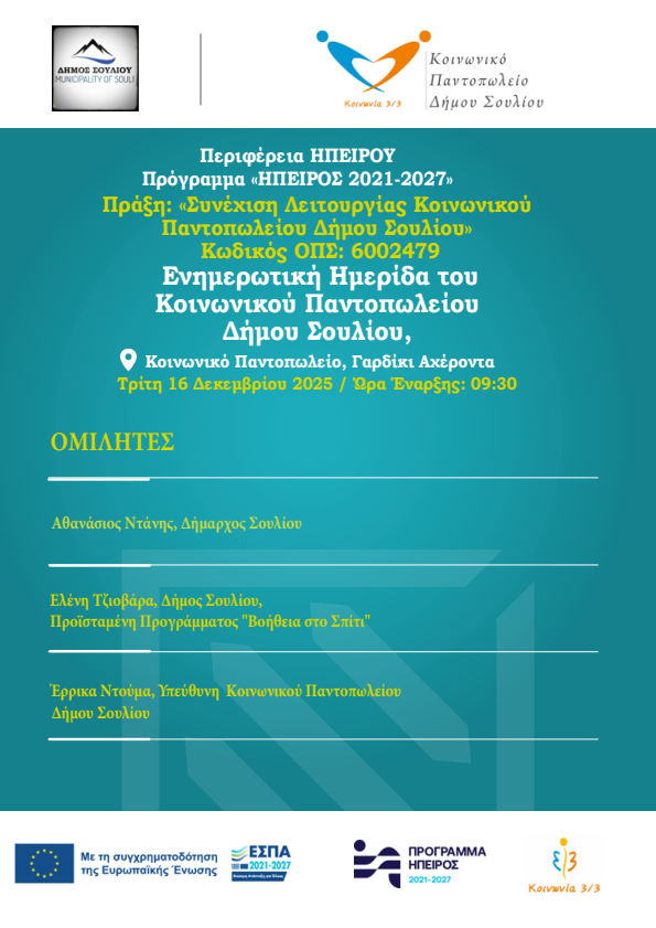 Ενημερωτική Ημερίδα του Κοινωνικού Παντοπωλείου του Δήμου Σουλίου