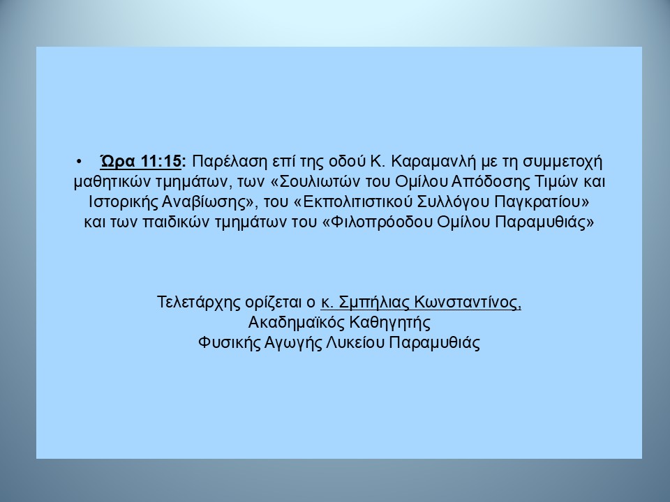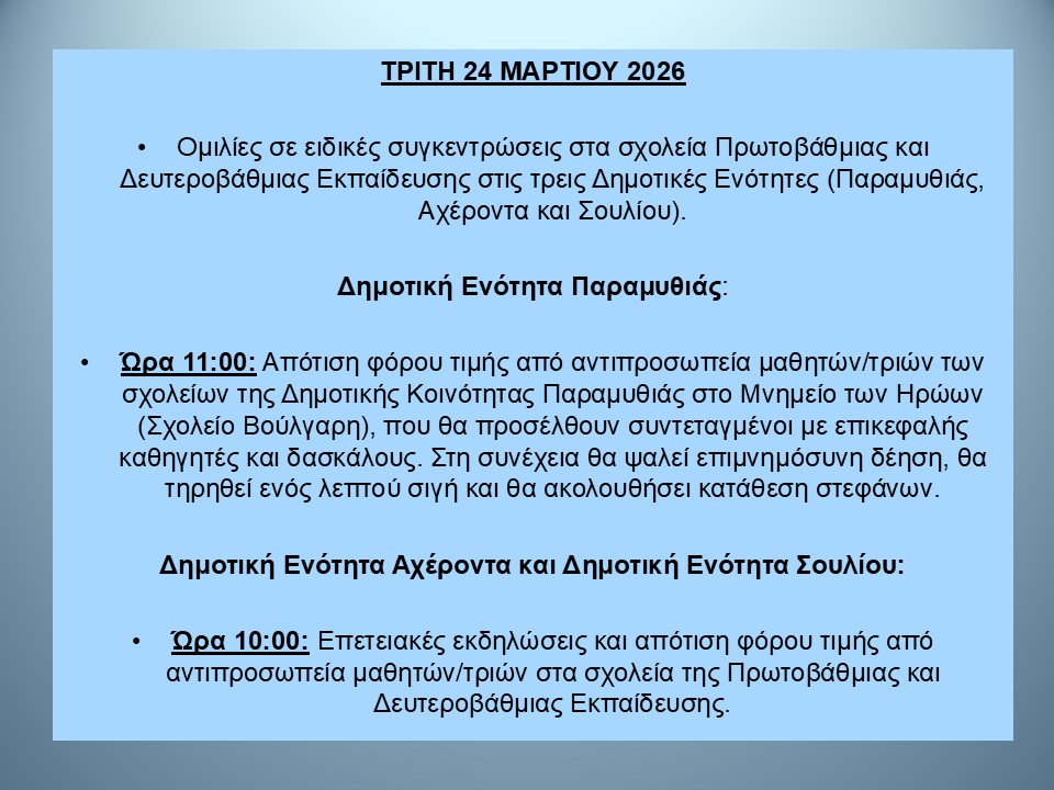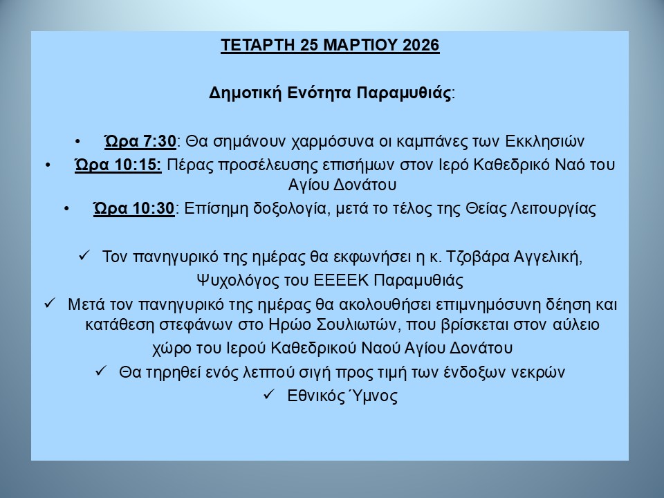 Πρόγραμμα εορτασμού Εθνικής Επετείου 25ης Μαρτίου 1821